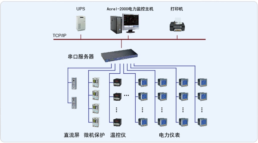 Acrel-2000電力監(jiān)控系統(tǒng)在本項(xiàng)目中的應(yīng)用充分利用了現(xiàn)代電子技術(shù)、計(jì)算機(jī)技術(shù)、網(wǎng)絡(luò)技術(shù)和現(xiàn)場(chǎng)總線(xiàn)技術(shù)的發(fā)展,對(duì)變配電系統(tǒng)進(jìn)行分散數(shù)據(jù)采集和集中監(jiān)控管理,對(duì)配電系統(tǒng)的二次設(shè)備進(jìn)行組網(wǎng),通過(guò)計(jì)算機(jī)和通訊網(wǎng)絡(luò),將分散的變電所的現(xiàn)場(chǎng)設(shè)備連接為一個(gè)有機(jī)的整體,實(shí)現(xiàn)電網(wǎng)運(yùn)行的遠(yuǎn)程監(jiān)控和集中管理,以保證用電的安全、可靠和高效。