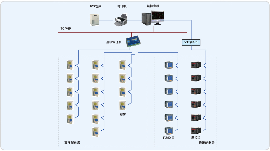 該項目是一個新建廠區(qū)的配電系統(tǒng),包含35KV變壓器2臺,10KV變壓器3 臺,項目中監(jiān)控范圍為35KV線路微機保護裝置2臺,變壓器溫控儀8臺,10KV微機保護裝置12臺,安科瑞智能儀表8臺,本套系統(tǒng)主要強調(diào)實時數(shù)據(jù)的監(jiān)測、控制,主要針對整個配電系統(tǒng)可靠性進行全程的智能化監(jiān)控,數(shù)據(jù)分析,投、斷,以及對各回路所用電能進行統(tǒng)計。