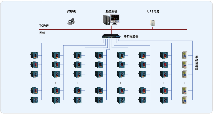 1. 實時顯示樓層動力柜內的各個回路的用能狀況,儀表的采集到的電能值;