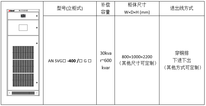 適用于頻率50Hz電壓0.4kV電網的無功功率動態補償。
