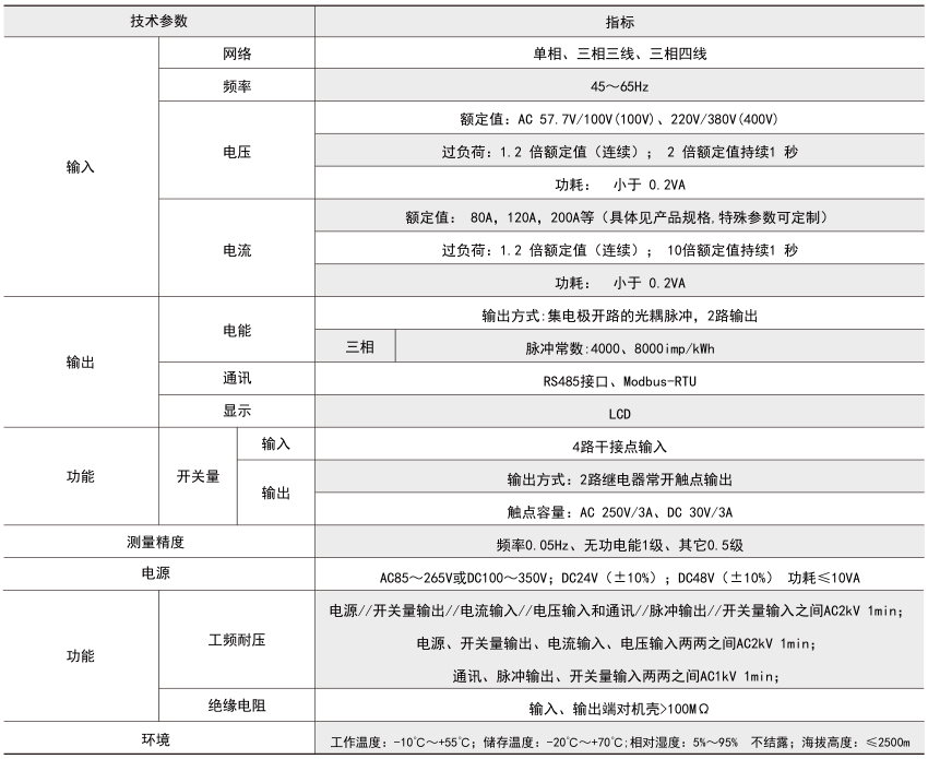 它集成全部電力參數(shù)的測量(如單相或者三相的電流、電壓、有功功率、無功功率、視在功率、頻率、功率因數(shù)等)、復(fù)費(fèi)率電能計(jì)量、四象限電能計(jì)量、諧波分析以及電能監(jiān)測和考核管理。多種外圍接口功能:帶有RS485/MODBUS-RTU協(xié)議;帶開關(guān)量輸入和繼電器輸出可實(shí)現(xiàn)斷路器開關(guān)的“遙信”和“遙控”的功能,采用LCD顯示界面,通過面板按鍵來實(shí)現(xiàn)參數(shù)設(shè)置和控制,非常適合于實(shí)時電力監(jiān)控系統(tǒng)。