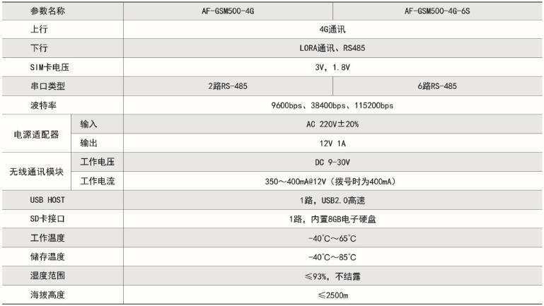 AF-GSM500 DTU技術指標