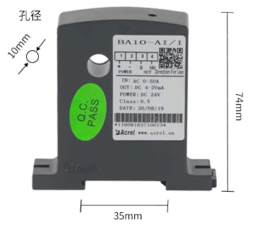 技術要求:輸入電流AC 0-50A;輸出DC 4-20mA;穿孔φ10mm;準確級0.5。