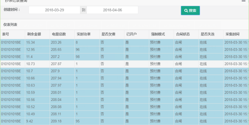 所有低額預警、欠費告警、遠程控制、充值圈存等均被記錄入日志,并供用戶篩選查詢。