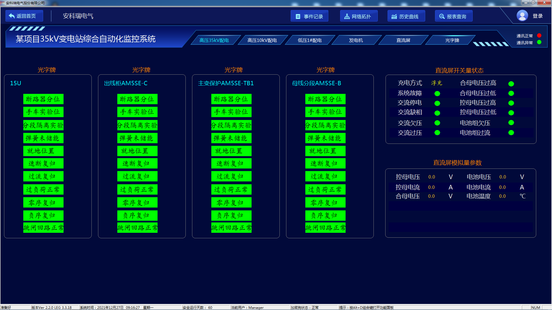 系統提供了完整的SCADA功能,包括主接線圖、設備工況、實時數據顯示、定值管理、SOE報警/記錄/查詢/打印、棒圖、實時/歷史曲線、語音報警、歷史信息查詢、用戶權限管理、各種運行數據統計分析報表等。系...